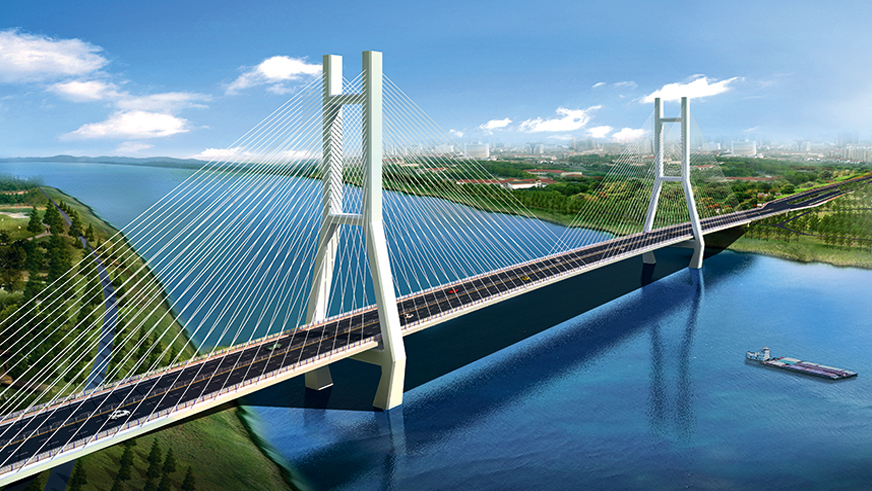 濟南黃河公路大橋采用雙塔雙索面等高鋼桁架斜拉橋結構形式,全長 1028 米,主跨 488 米,主塔高 168 米,主梁采用整體式鋼桁梁斷面,上下兩層,上層橋面為雙向八車道公路橋面,下層為雙線軌道橋面。濟南黃河公路大橋是貫徹落實黃河流域生態(tài)保護和高質(zhì)量發(fā)展的國家戰(zhàn)略深入實施的重大項目,是加快濟南“擁河發(fā)展”、奮力開啟“黃河時代”的重要保障。